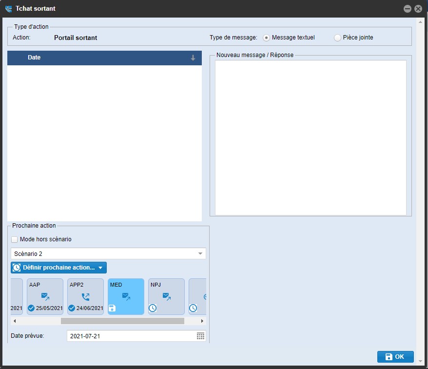 L'historique des messages apparaîtra dans la zone à gauche trié par date de réception.