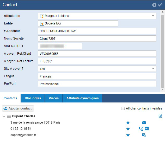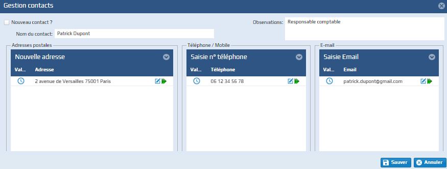 La zone d’observation peut être utilisée pour renseigner la fonction du contact au sein d’une entreprise (comptable, DAF …) ou toutes autres informations utiles :