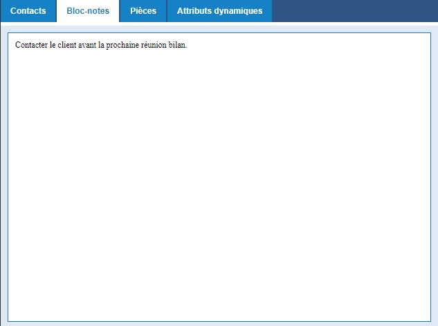 Le bloc-notes permet de laisser un message attaché au dossier qui sera consultable par n'importe quel chargé de recouvrement qui accèderai à la fiche client.