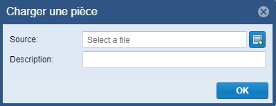 Vous pouvez importer le document correspondant, la description est facultative et apparaîtra sous le nom du document de l'onglet “Pièces”.