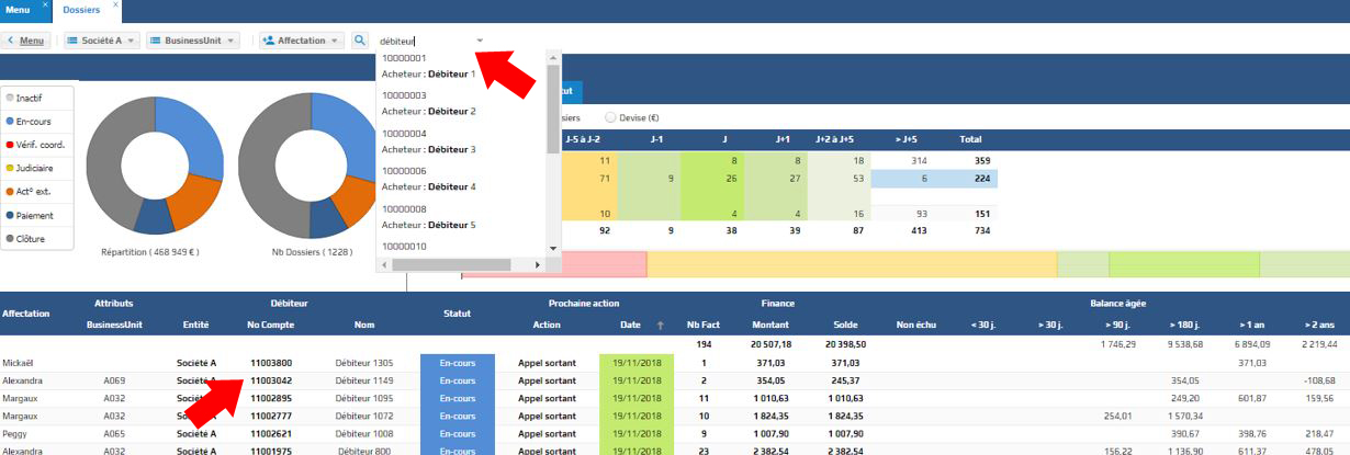 - double-cliquer sur la ligne du débiteur correspondant dans la liste qui s’affiche et qui correspond au(x) filtre(s) préalablement choisi(s)